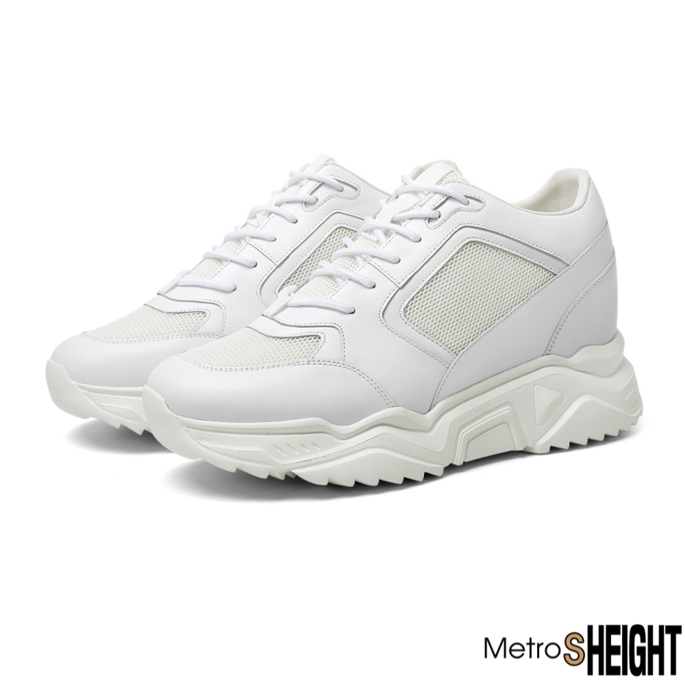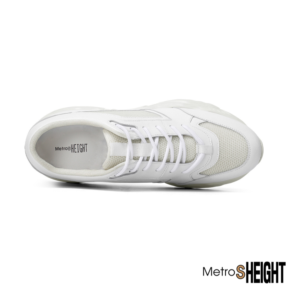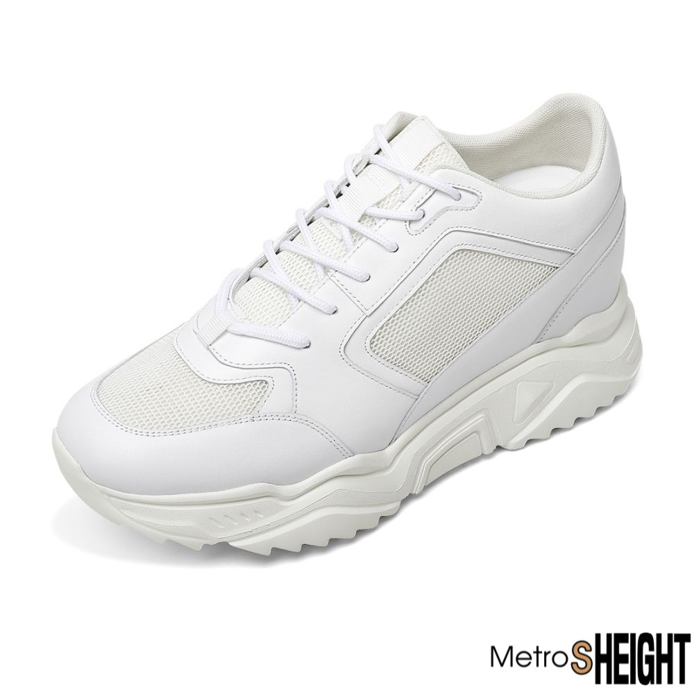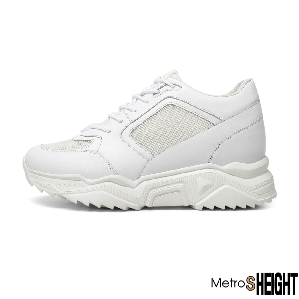 รองเท้าผ้าใบเสริมส้นชาย เพิ่มความสูง 10 cm White Leather “Volt” Trainers
