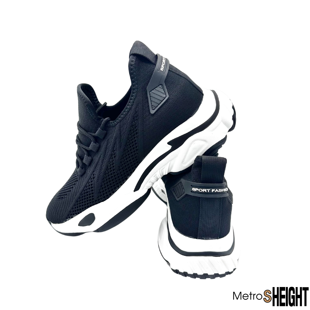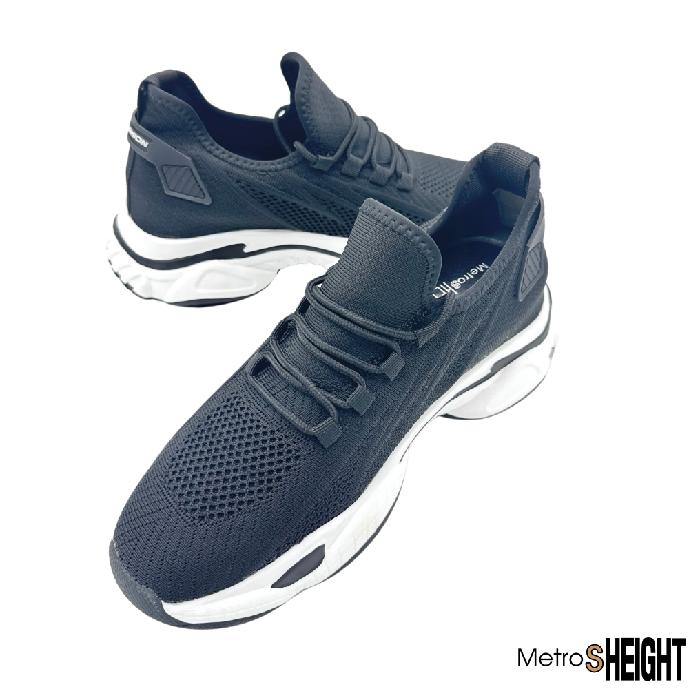 รองเท้าผ้าใบเสริมส้นชาย เพิ่มความสูง 8 cm Black Knit “Rye” Trainers